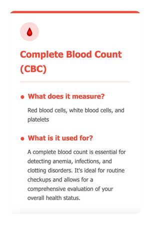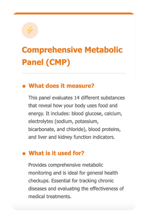 In some cases, a complete blood count is sufficient to get an overview of your health and check normal blood count values. In other cases, more specialized tests are needed, such as PSA testing for early detection of prostate cancer, a comprehensive metabolic panel or comprehensive metabolic profile to evaluate how the body uses nutrients, maintains chemical balance, and supports overall metabolism, a basic metabolic panel for general metabolic and kidney function, or a mononucleosis test for patients with prolonged fatigue or other related symptoms.